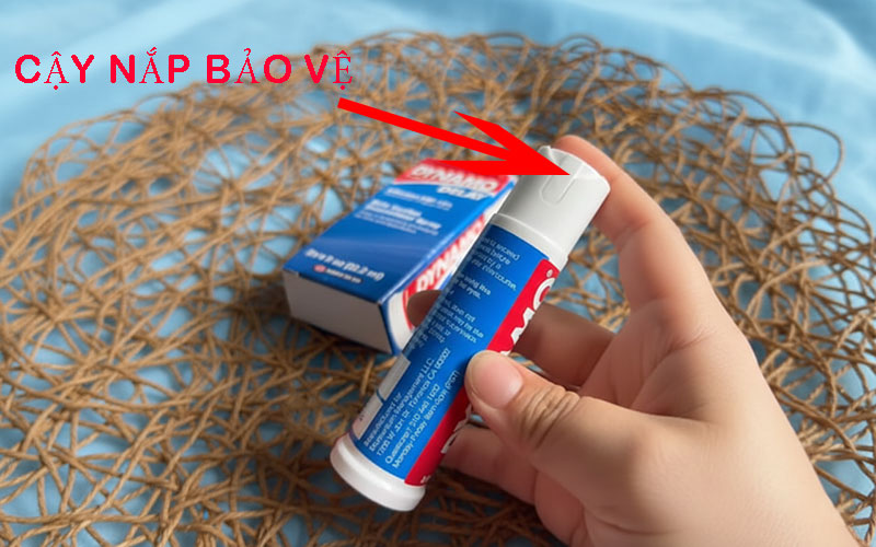 Mở khóa an toàn: Tháo khóa nhựa bảo vệ ở đầu chai.